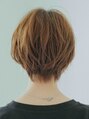 横幅をしっかりもたせたワイドバング(広めの前髪)がポイントのショートスタイルです。耳にかけると、また雰囲気を変えることができます。前髪の幅を広く取る分、シースルーにして抜け感を出しています。