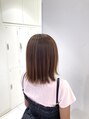 ブリーチなしハイトーンのベージュカラー。カットはぱっつんで!
