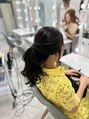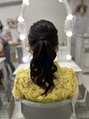 暗髪を活かしてツヤ感のあるように余り動きは出さず綺麗めなポニーテールに仕上げました。