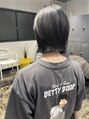 ステップカット髪の毛をまとめた時もかわいくなれるように顔まわり微調整してます。カラーはダックブルー