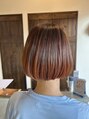 ミニボブにオレンジカラーがカジュアルで可愛い♪日頃のカラーに飽きた方におすすめです!ミニボブの表面に髪質改善ストレートをかけることで乾かしただけでツヤツヤボブになります♪
