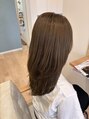 赤みを抑えて透明感、柔らかな質感、落ち着きのあるスタイルです。前からは内側にレイヤー出やすくトップにボリューム出るようにロングレイヤーでふんわり仕上げました。