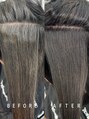 白髪染めの濃いブラウン染料は使用せず、グレージュで白髪を活かした透明感カラー
