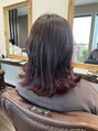 「いつもと違う感じにしたい!」とのご希望ただし派手すぎない雰囲気がいい、とのオーダーでした。毛先にほんのりピンクを入れて、落ち着いたブラウンベースにアクセントが効いていますね。派手すぎず、自然に可愛らしい印象を与えてくれるスタイルです