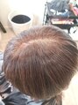 明るい白髪染めで白髪もきれいに染め上げました。ハイトーンなので透明感も出て、出てきた白髪も目立ちづらくなります。