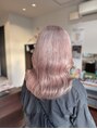 ミルクティーベースのカラーにほんのりピンクベージュを混ぜて柔らかいミルクティーピンクベージュに◎ブリーチ2回の履歴。ブリーチ回数は、履歴と髪質によって異なりますのでご相談ください。
