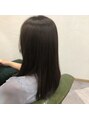 セミロングストレートスタイル扱いやすい程度に裾に少しだけレイヤー入れました。少し白髪がありましたので根本はグレイカラー使用しました。毛先は赤味を抑えるようにオリーブ系で染めました。