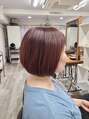 ブリーチなしダブルカラーカシスレッドくびれ外はねボブレイヤー