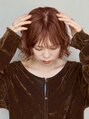 コーラルオレンジ ラウンドバング パールベージュ パーマ風
