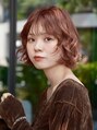コーラルオレンジ ラウンドバング パールベージュ パーマ風/ホットペッパービューティー