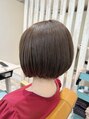 まとまり良い少し長さを残したショートボブスタイル♪髪質改善ULTOWAトリートメントでまとまりのあるスタイルにしていきました。髪の毛の色味は柔らかいベージュにしつつ、重くならないようにしました。明るめに染めたい方おすすめです♪