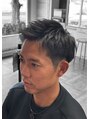 フェードでサイドandバックを刈り上げ。トップは長めに残して動きを出しました!