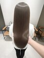 肩下レングスで自然に外ハネするようにカットされたミディアム。毛先に空気を含んだような軽やかさが、ナチュラルなのに洗練された印象に。METEOカラーで染めたラベンダーベージュは、今までにない艶感と、指通りなめらかな“サラサラな手触り”が魅力。