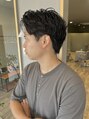 動きのあるセンターパートスタイルパーマをする事でワックスがやりやすくなり、1日キープ!柔らかい印象が強く女性ウケも高いです!
