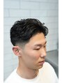 アンダーは低めに0.5ミリから自然にボカシたフェードに、トップは長くなくあえて短めに設定したセンターパート!パーマは、大きめなロッドをバックに巻き、刈上げの繋ぎめの短い部分は、ピンパーマで馴染ませて、大人の余裕あるスタイルに変身!!