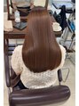 お客様の髪の毛の状態に合わせた縮毛矯正です!シャキーンとはならず柔らかい質感になるのが特徴です!質感再整トリートメントも一緒に行ってますのでより柔らかい質感とツヤを与えることができます!