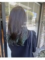 インナーカラーのパープル^^葡萄色でかわいいです。パープルは2回ブリーチ後にのせた方が綺麗にでます。色持ちは良いです。抜けたら白っぽく抜けるので綺麗です。