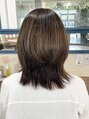 結べる長さを残して、表面はあごラインで段を入れたレイヤースタイルです顔まわりと後ろの表面にハイライトを入れました