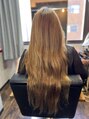 毛先まで潤いを感じさせる艶やかなロングストレート。髪質改善カラーで透明感と手触りを両立し、大人女性の上品な美しさを引き出しています。