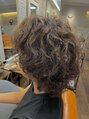 落ち着いたベージュ系のカラーと、クセを活かしたくびれショート。