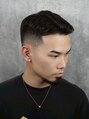 サイドをタイトに刈り上げたフェードと、トップを自然に流した清潔感あるスタイル。男らしさと爽やかさを兼ね備え、ビジネスからプライベートまで幅広く似合う万能ヘアです。