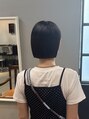 タイトなボブスタイルですバングを厚め、広めにして耳にかけてもぱつっと感が残るモードな雰囲気です