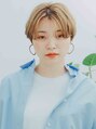 ボリュームの位置を少し高めでにカットし、襟足は刈り上げないぎりぎりで切ることによってかっこよさありつつ女性らしさも残したショートになります。ヘアカラーを明るくすることで軽さをだし、透明感のあるベージュで外国人のような雰囲気に。