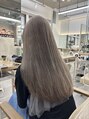 ブリーチありでつくる王道のグレージュカラー。赤みをしっかり抑えて、柔らかく透明感のある仕上がりに。室内では落ち着いたベージュ感、太陽光の下では透けるようなグレー感が際立ちます。透明感カラー、外国人風カラーを楽しみたい方におすすめです。