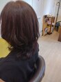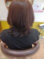 毛先に軽めのパーマ(エアウェーブ)をかけてセットの持ちを良くしました。くびれのあるシルエットで巻いても重さを感じないスタイルです。