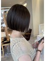 厚みの少ない切りっぱなしボブ。毛先が広がって厚みがでてしまうお悩みをお持ちの方は縮毛矯正がオススメです。