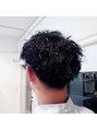 2ヶ月前に当てたパーマを生かし、ビジネスでもいけるブルーブラックでいきました!もっと青みに寄せることも可能です^^スキンフェードは、あえてカラーせずメリハリを出しました!