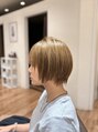 襟足を少し長めに残して外ハネさせている全体はコンパクトなボブベース表面に段(レイヤー)が入っていて、動きや軽さが出やすい