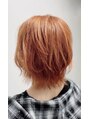 ウルフレイヤーでカットしてます。ダブルカラーでオレンジ系に仕上げました。N.髪質改善トリートメントでケアしてます