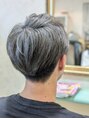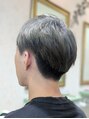 ブリーチを数回行いシルバーアッシュにしています。トリートメント効果の高いカラー剤で極力傷まないようにスタイルを作れるように心がけています。