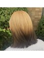 毛先は履歴を考えて無理に色を揃えず、体力が残っている部分のみにブリーチでアプローチして、デザインカラーを作ります。今回はブリーチのみで作るブロンドルーツ。毛先は前回のカラーを活かしてオンカラーはせず。ブリーチのみでもめちゃくちゃかわいいです