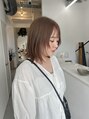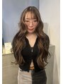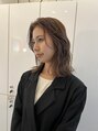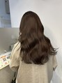 赤みをしっかりと消した透け感のあるオリーブベージュ。32ミリのコテで緩く巻いてしあげました。