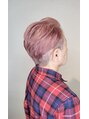 シニアツーブロックショート。サイド内側からバックにかけ刈り上げ、トップはやや長めにしたシニアショートスタイル。ピンク系イノアカラー施術。