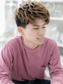 【スタイルは★ブックマーク★が便利】パッと目を引くハイトーンと思い切った立ち上げが男らしいワイルドアップバング。くせ毛風カールでニュアンス感ある動きをつけたり、強めパーマで攻めてもOK!耳上の刈り上げで毛量調整を。(メイク担当:北浦和店成田)