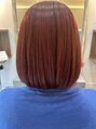 伸ばしてた髪をばっさりボブにカットし、以前顔まわりにブリーチしてたところにはバイオレット、他のところにはレッドでカラーし全体ストレートをあてツヤツヤにしました