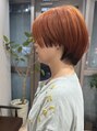 可愛さとハンサムさをMIXしたショートスタイル。顔まわりはすっきり、バックは重めのウエイトでシルエットにメリハリを。襟足とのカラーのバランスを意識し、オレンジカラーで華やかさもプラスしました。