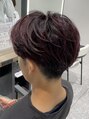 センターパートと毛先に向かって濃くなるレッドカラーブリーチなしでも再現可能◎