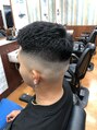スキンフェードに、ウェットな質感のアイロンパーマを組み合わせたスタイルです。タイトなシルエットで清潔感をキープしながら、毛流れと艶感で男らしさを演出。直毛やハチ張りにお悩みの方にもおすすめです。30代~40代の方にも好評の万能スタイルです
