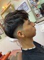 ダークメッシュ12トーンのアッシュカラーをメッシュキャップで入れました。ローフェードでウェイトポイントを下げることにより、今っぽいデザインを意識してます。