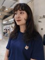 全体はほんのりゆるっと動くニュアンスパーマ。前髪と顔周りは全体のパーマと馴染むくらいの大きさのカールで、でも全体より少しくりっとさせたデザインに。耳にかけたり、結んだ時にも、更にパーマを楽しめるように。