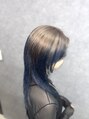 ホワイトミルクティー×ブルーデザインカラー。グラデーション。ブリーチ2回~3回必須。デザインカラーはデザインにより差額がかかります。
