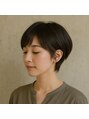 自然な丸みと束感を活かしたショートスタイル。首元をすっきり見せつつ毛先に軽さを加え、髪質改善超高濃度水素トリートメントでツヤとまとまりを実現。大人女性に似合う上品な仕上がりです。
