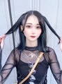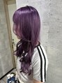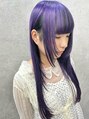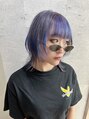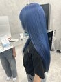 lavender gray × vivid blueカラーを2色使い配色もランダムに発色の強いブルーを入れたデザインカラー。また、そのデザインカラーを活かすミディアムウルフカットとカラーによって動きが出やすいようになってます
