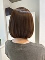 重さを残したワンレンボブに、ツヤ感のあるマロンベージュカラーの組み合わせです。