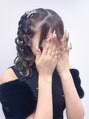 三つ編み垂らしたハーフツインにハートつけたスタイルです!ウェーブミックスでふわふわに巻いてます!オプション ハート300円2個