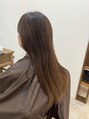 切りっぱなしボブにきって、ラインをきれいにだすように矯正をかけています。カラーはルフレカラーのアメトリンで透明感のあるくすみベージュに